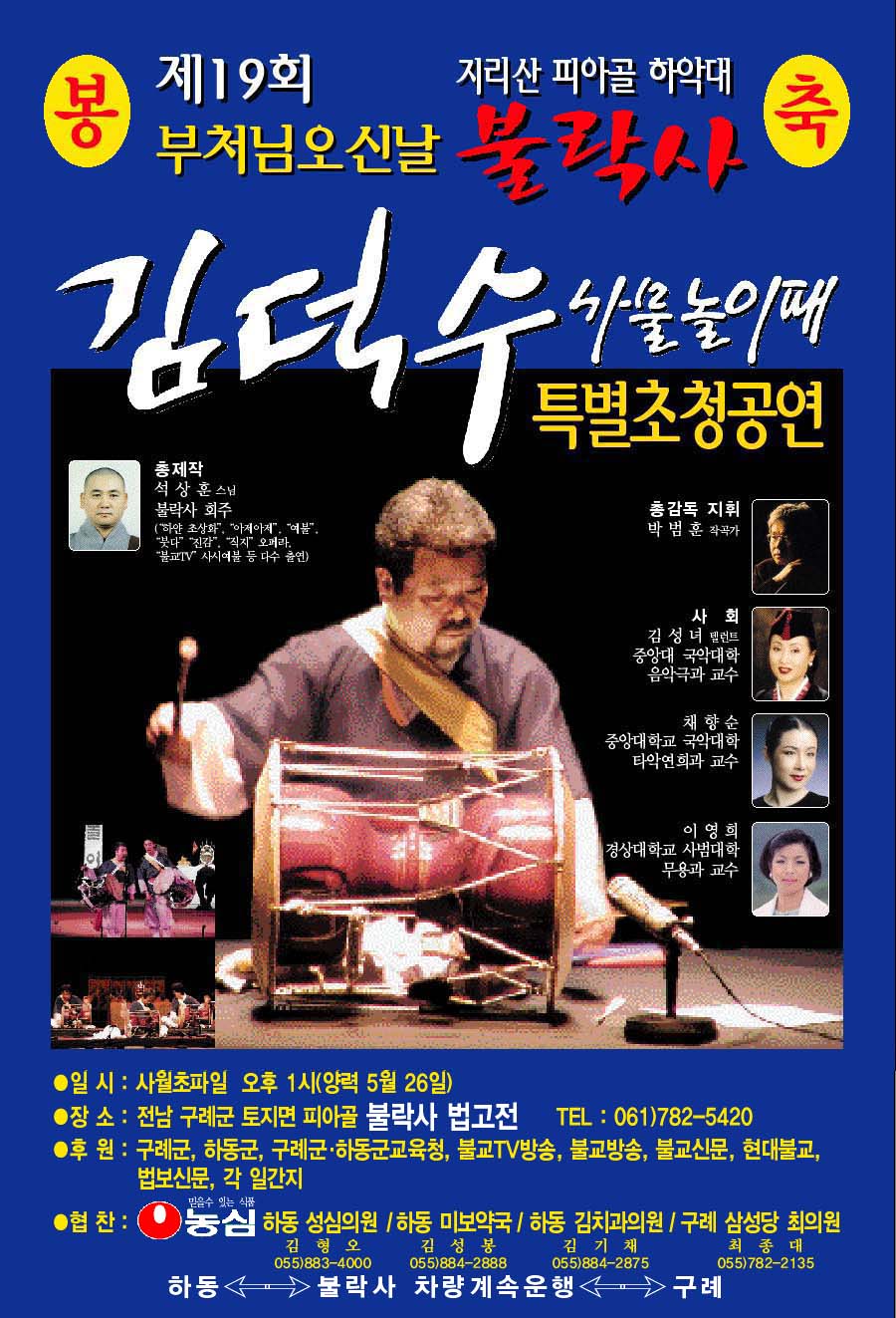 대한불교 조계종 지리산 피아골 하악대 불락사에서 김덕수사물놀이패 특별공연이 있습니다.