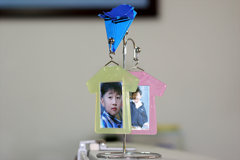 아들놈한테 종이로 만든 꽃한송이와 사진을