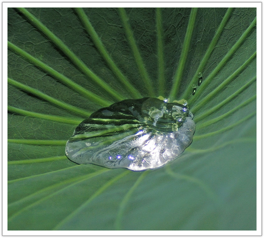 연잎 중앙에 있는 물이 연잎은 육안으로는 움직임이 없는데 물이 끓는듯이 물방울이 튀어 오르고 있더군요.