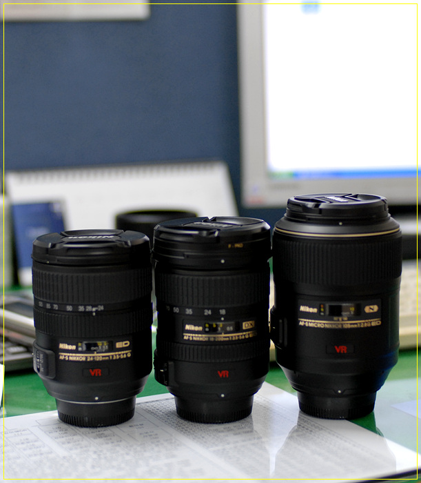 <사진설명:저의 고만고만한 vr렌즈들, 좌로부터 24-120vr, 18-200vr, 105vr>