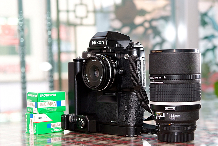 니콘 F3hp + 모터드라이브 + 세로셔터 + 45mm 팬케잌 + 135.2 인물용 뒤팍팍날림 렌즈... 묵직합니다...커커커 들고오셈..