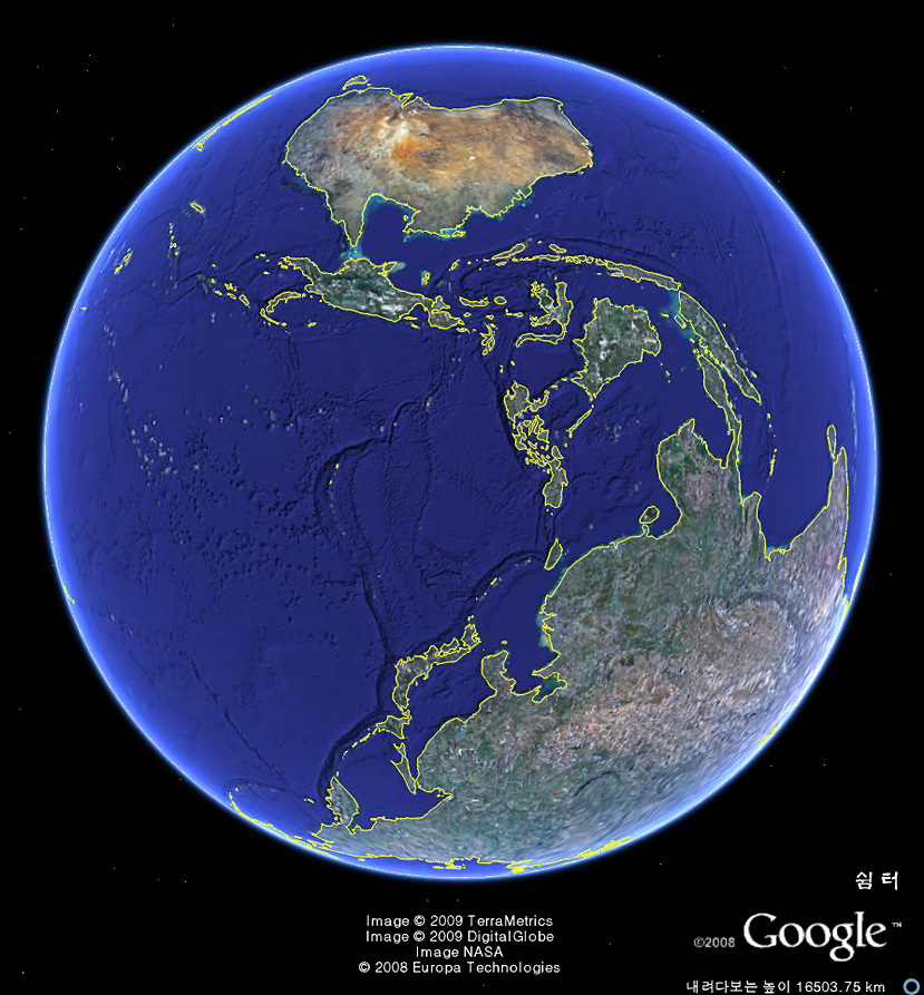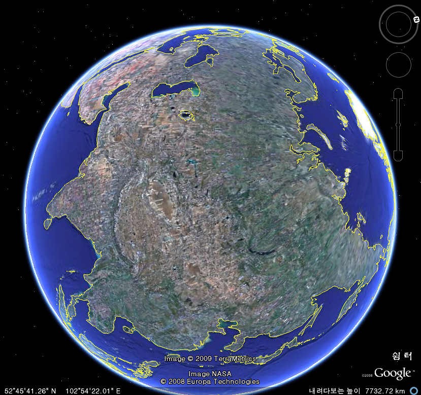 구글어스의 인공위성 사진을 통해 세계를 항해(?)하다 보면 동서남북의 방향을 잊고 자유롭게 움직이는 경우가 있습니다.