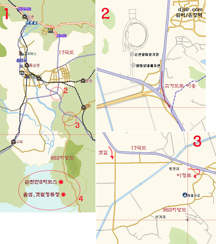 1. 순천IC에서 나온후 여수 방향 17번국도를 타고 시내를 거쳐 계속 직진합니다.