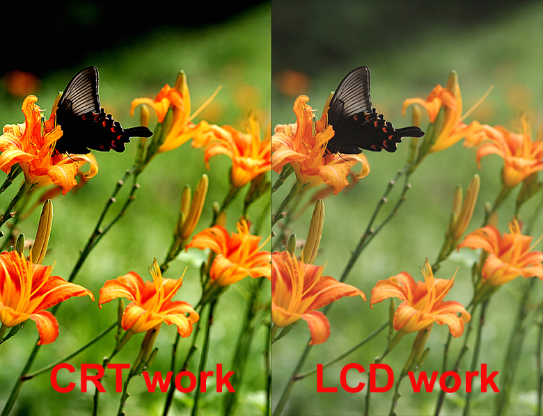 대비또한 CRT가 높군요....LCD쓰시려면 애플 시네마 디스플레이(물론 맥사용자여야겠죠)나, 에이조 685EX LCD모니터 가좋다고들 하던데.....아직 보급형 LCD로는 CRT에서작업한 것을 따라가기 힘들듯 하네요 -