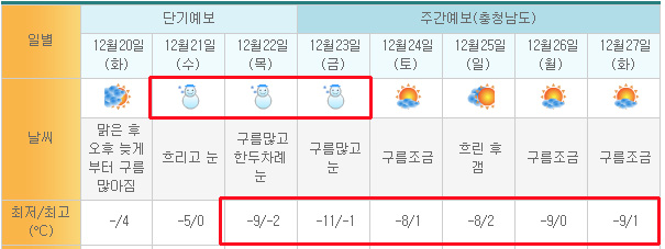 추위가 오는군요.