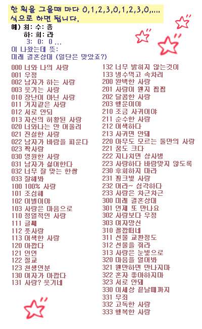 아내 이름과 맞춰보니 [ 0 3 0 ]이 나오네요...