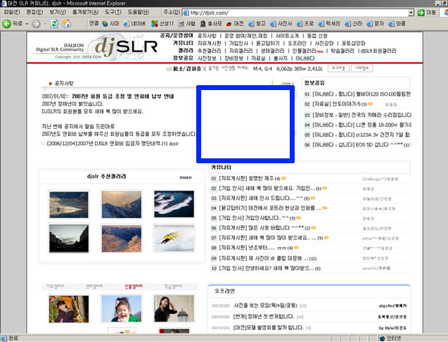 차분하게 공부해봐야겠습니다. 2015 10.05 제가 윈도우 시스템으로 로그인을 수년간 못했답니다. 크롬으로 접속해 보세요.한방에 접속되던데요. 2014 07.12 장담은 못하겠지만...참석하고 싶은 마음이 굴뚝 같습니다. 2014 07.12 오~~ 간만에 들어와 기쁜소식 듣습니다. 행복한 결혼이 되시고 건강 하세요. 2012 03.17 사진 생활한다는게 참 어려운 문제더군요. 한 번 해보고자 카메라도 작은것 하나 장만 했는데.... 쉽진 않네요. 2010 06.30