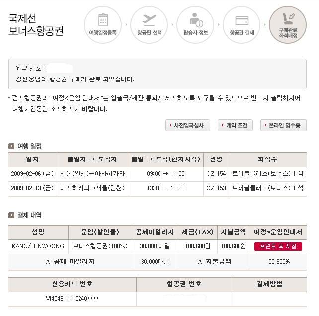 아직은 이른 시간이지만 미리 마일리지 꽁짜항공권을 예약했습니다.