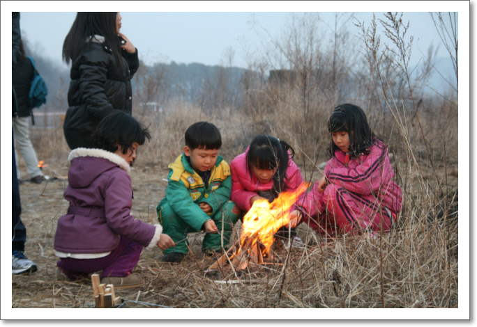 아이들도 모여서 불을 지피고...