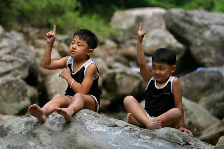 명천계곡아빠가 애들을 데리고 장난치기가 시작된다..