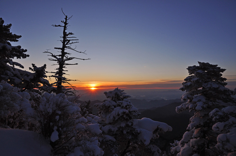 지리산의 아름다운일출과  설경이군요.