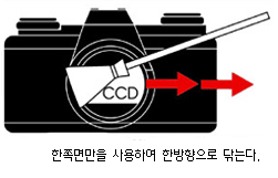 - 카메라의 CCD를 청소하는 도중 셔터가 닫히지 않도록 하십시요. 카메라의 매뉴얼을 참고하세요.