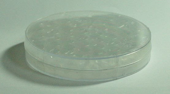 실험실에 몇박스 있는 Petri Dish 뚜껑 두개, 주방용 비닐 한장, 뽁뽁이 완충재, 3M 반투명 테잎, 가위