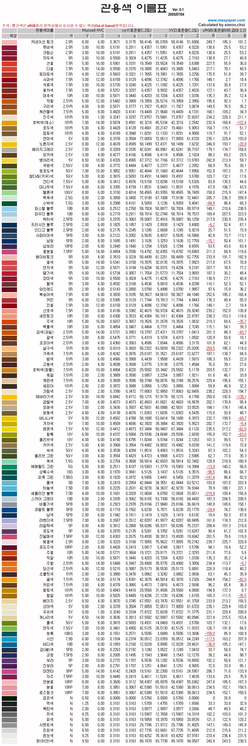 색상/ 색이름/ srgb값만 짤라서 만들어봤습니다.