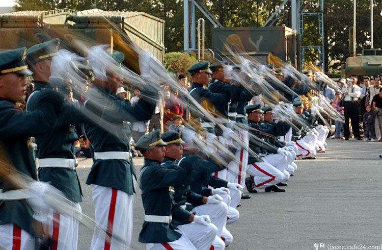 일반적인 셔터속도에서는 의장대 동작이 순간 멈춤현상처럼 나타나게 되는데,