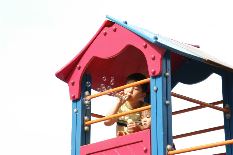 공원 놀이터에서 아이들의 노는 모습.
