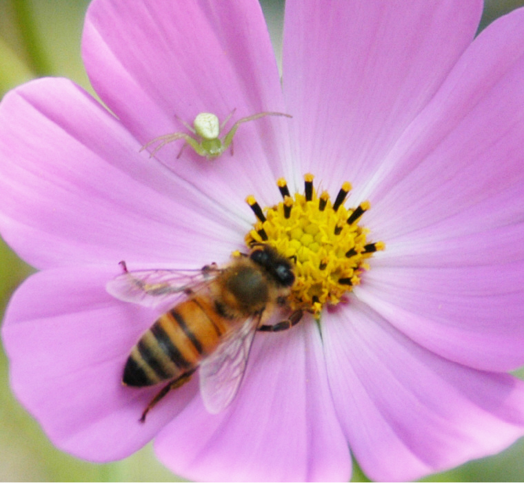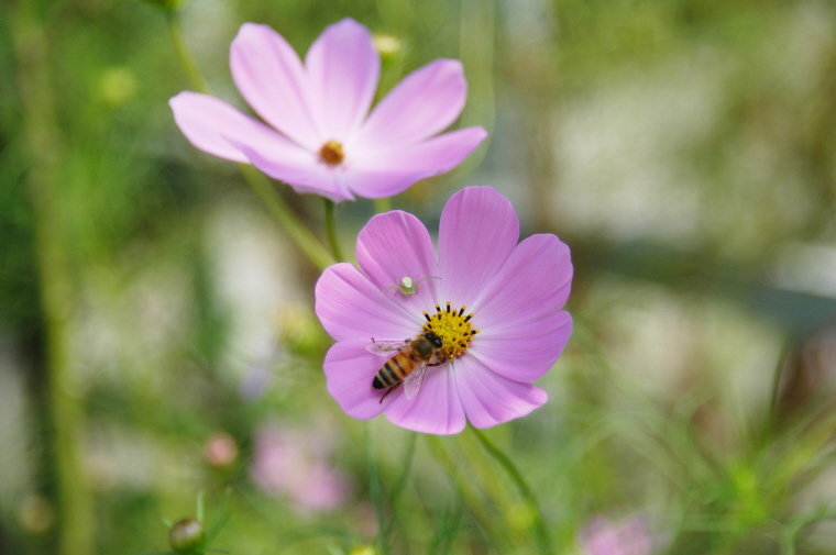 코스모스 꽃의 거미와 벌을 촬영을 해보았습니다.